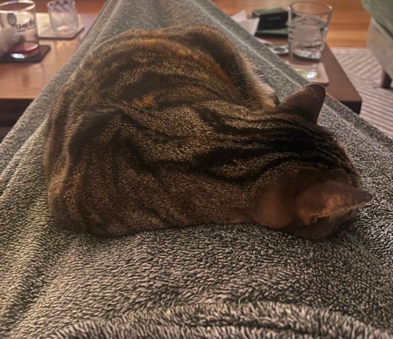 9. Our cat, Daisy, cuddling in my lap for the first time — she’s taking her time to warm up, so every incremental move towards affection just sends me right over the moon