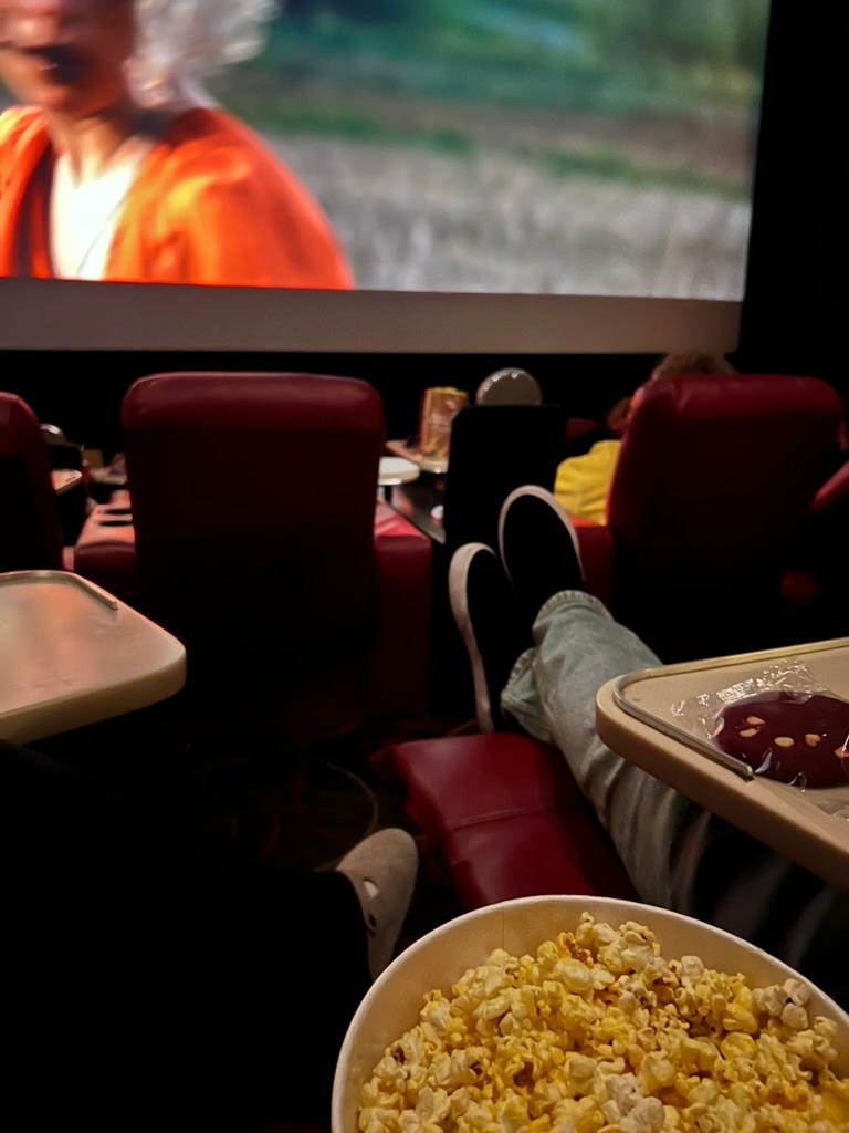 5. A midweek movie date to see Send Help, complete with a bucket of popcorn and contraband cookie