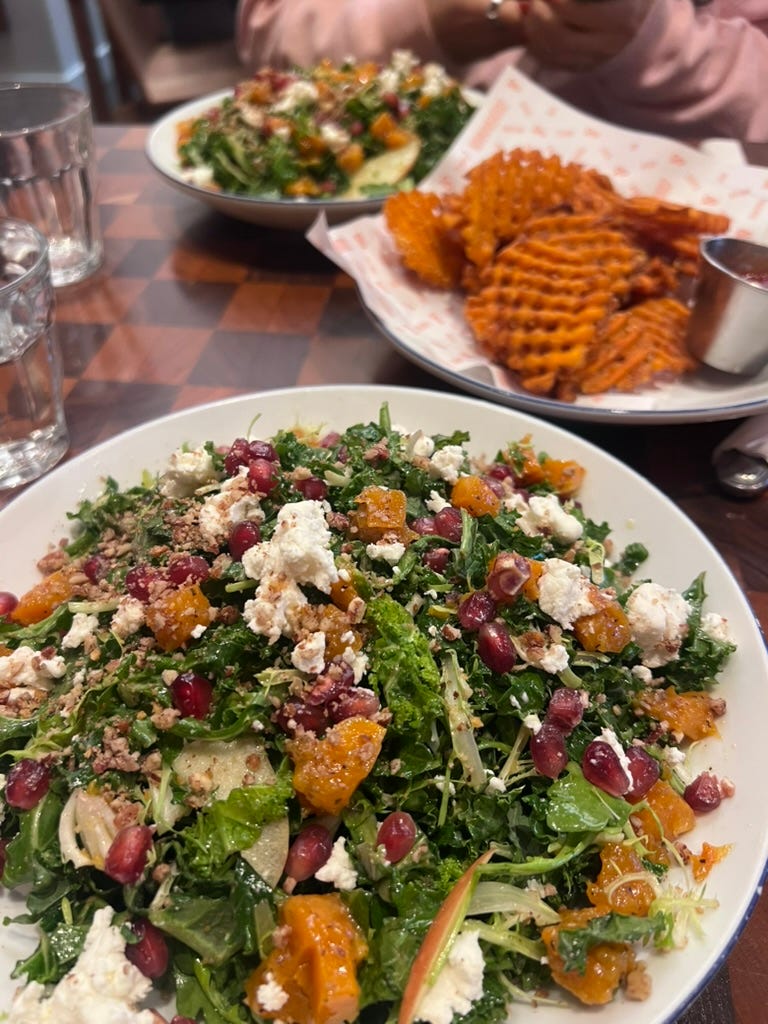 2. A mid Monday lunch with a friend — salads always taste better when they’re made for you